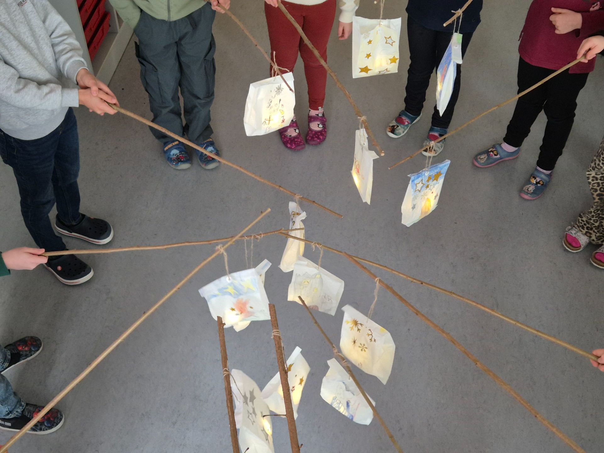 Im Anschluss wurden Martinslaternen gebastelt, deren Licht uns alle erfeute und die stolz präsentiert wurden.